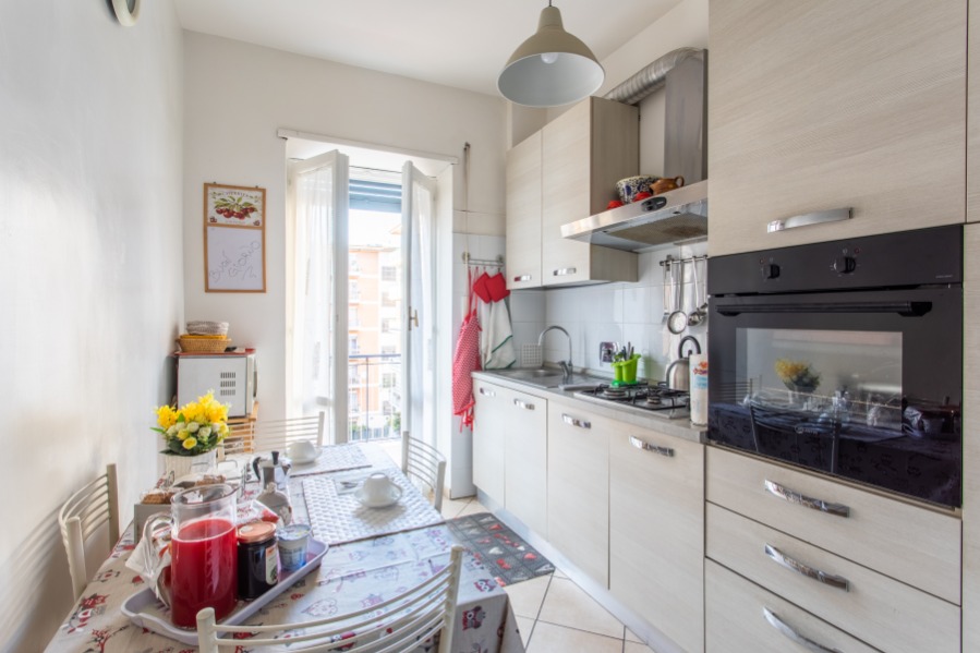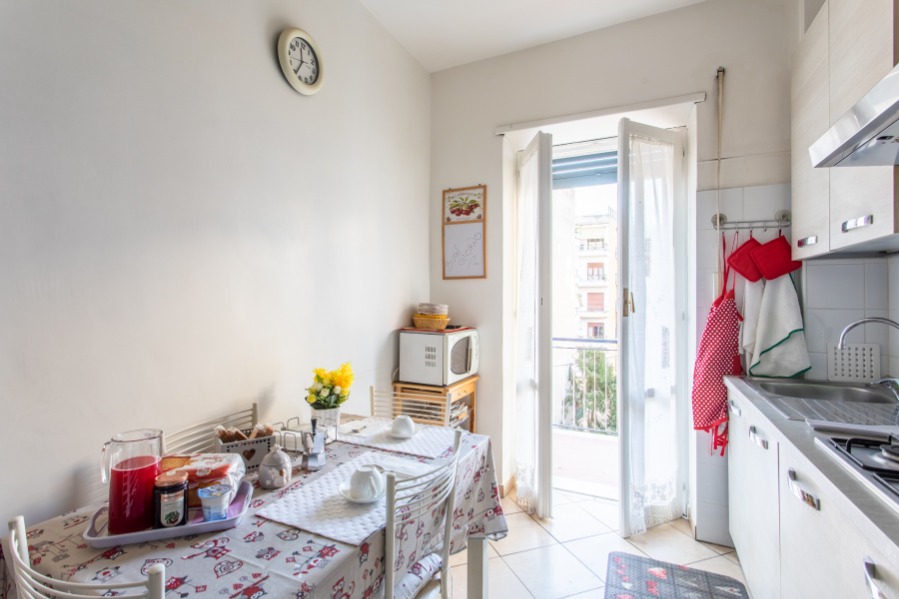 Guests have at their disposal a fully equipped kitchen equipped with everything needed for cooking. There is a table and chairs for breakfast and a TV. Finally there is a balcony overlooking the internal garden of the building.